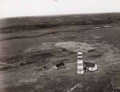 I’ve found some old photos of this lighthouse from the Parks Canada website. In these photos you can see the old lightkeeper’s dwelling and another building that’s no longer there today, an aerial view of the light station, and if you look closely you’ll see some people standing in the doorway. Was this a wedding photo? A family portrait? The lightkeeper’s family?