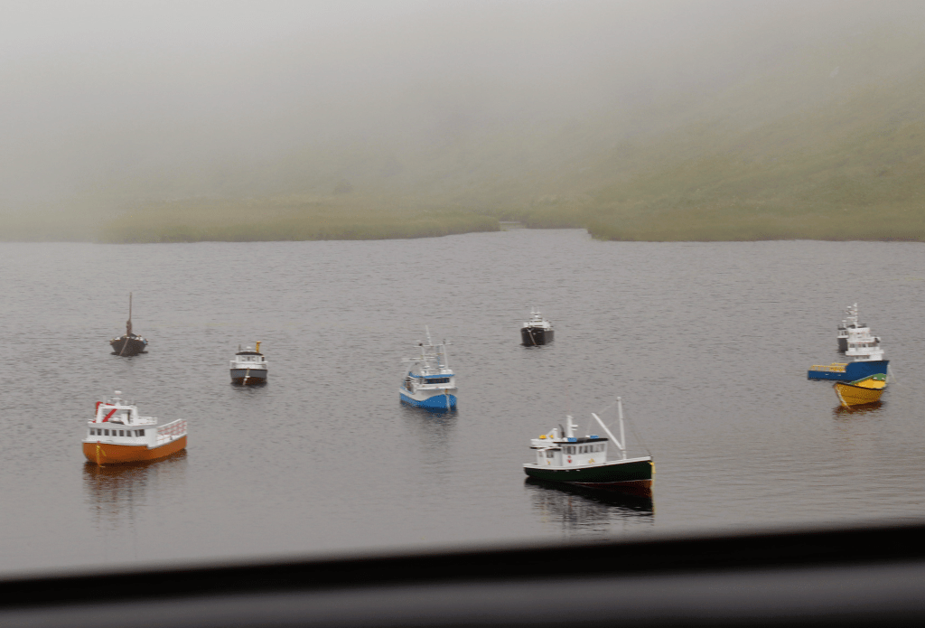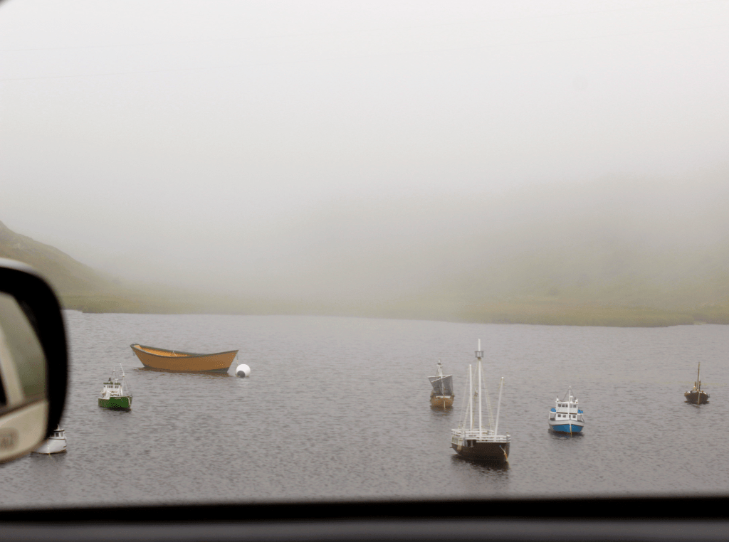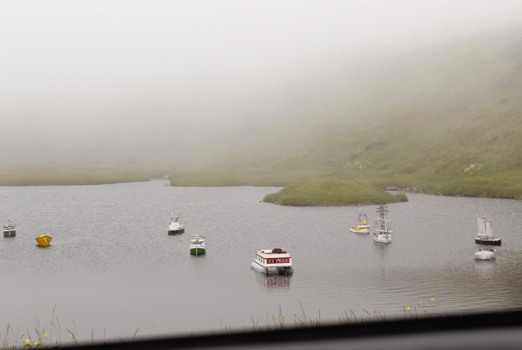 Normally, I’d take some photos of the surrounding landscape around the lighthouse, but the fog was truly too thick to see anything during this visit. I did notice some adorable mini boats during the drive back to the main road that made me nearly squeal with glee. Who made these?! I love this island and our culture so much. We have an incredible and creative community and hold so much potential. Seeing these mini boats in a pond was the cherry on top for visiting the lighthouse at Cape Race.